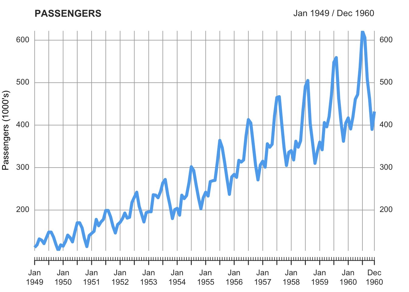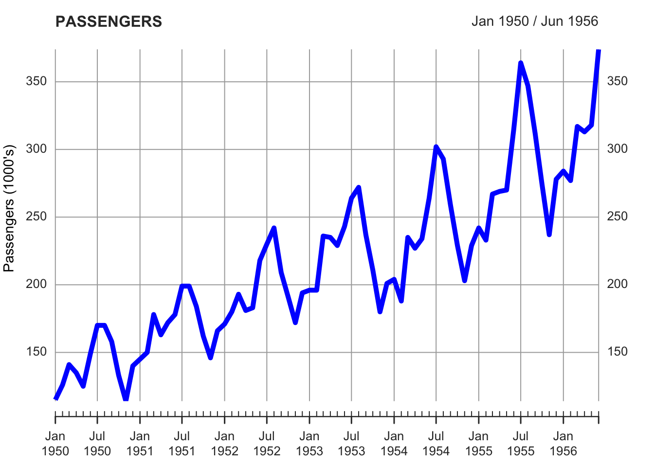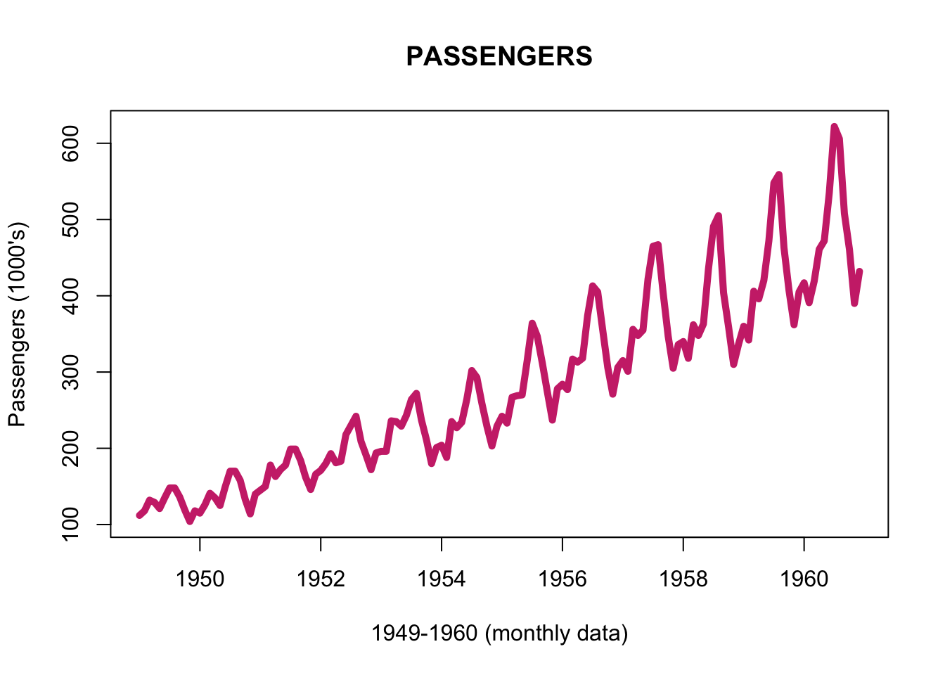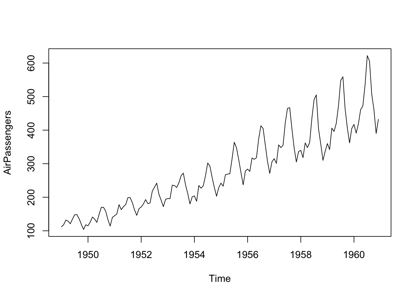 An example of ts time series is provided by the AirPassengers dataset, already included in R (you can load the data by running data(“AirPassengers”)).