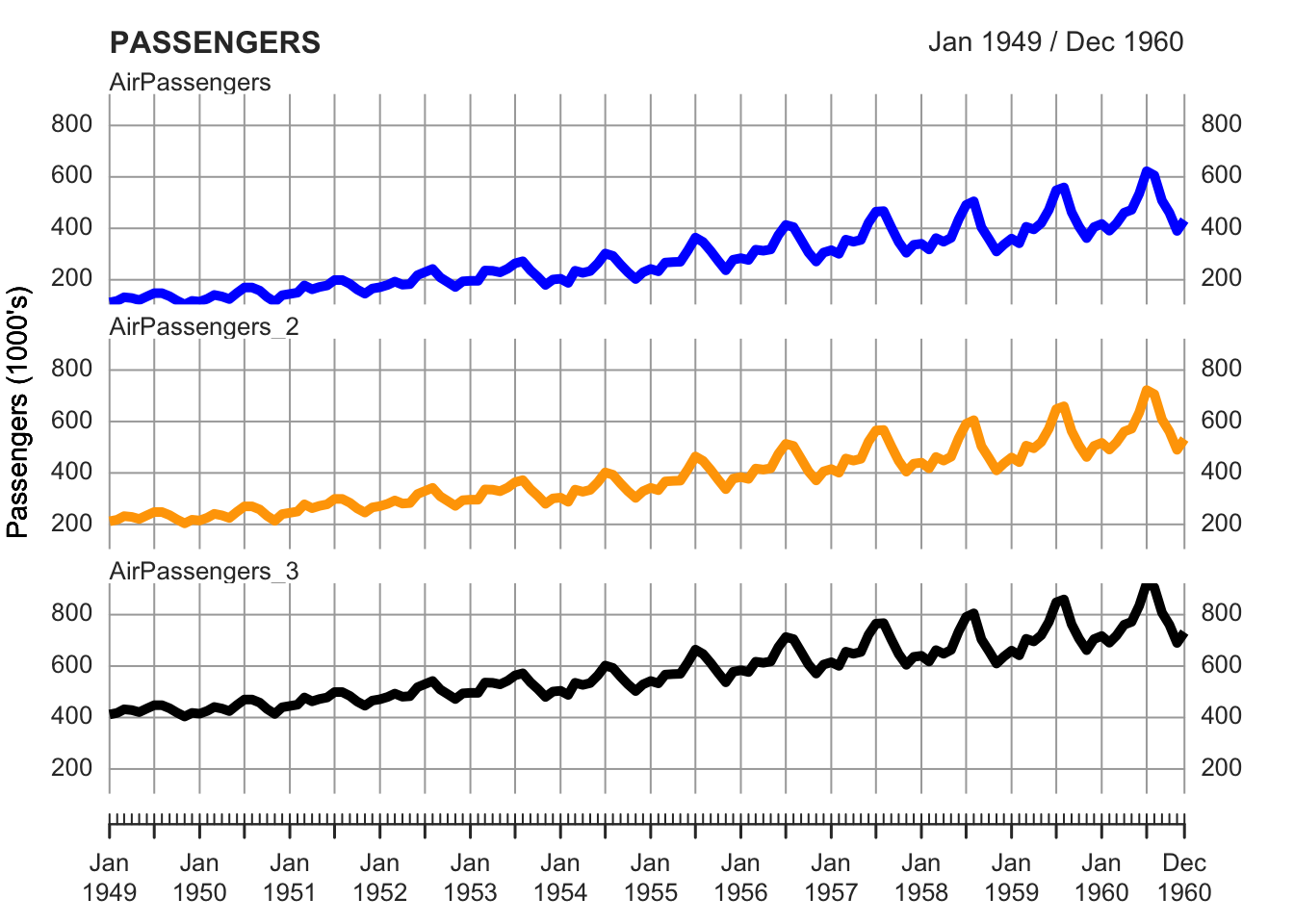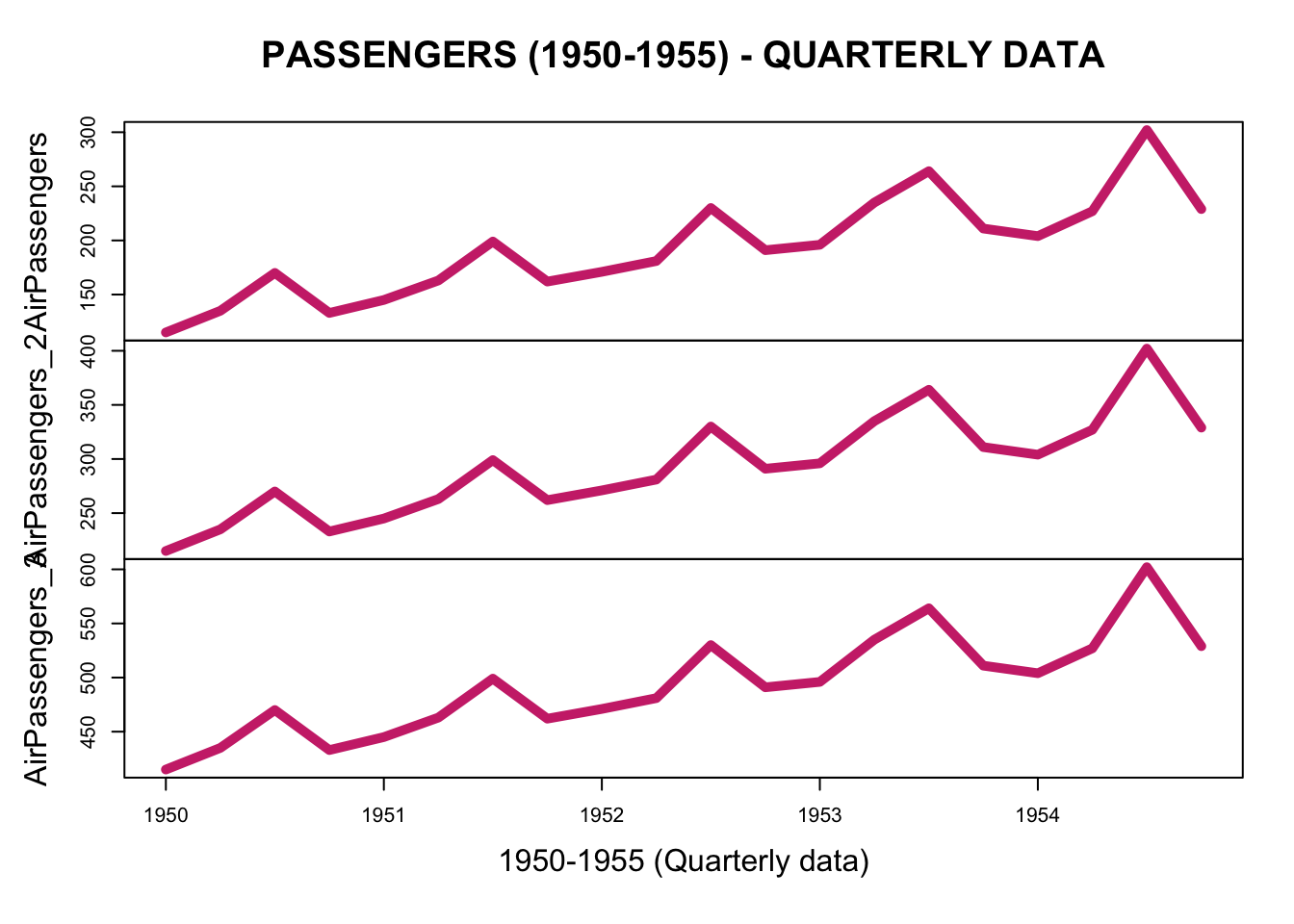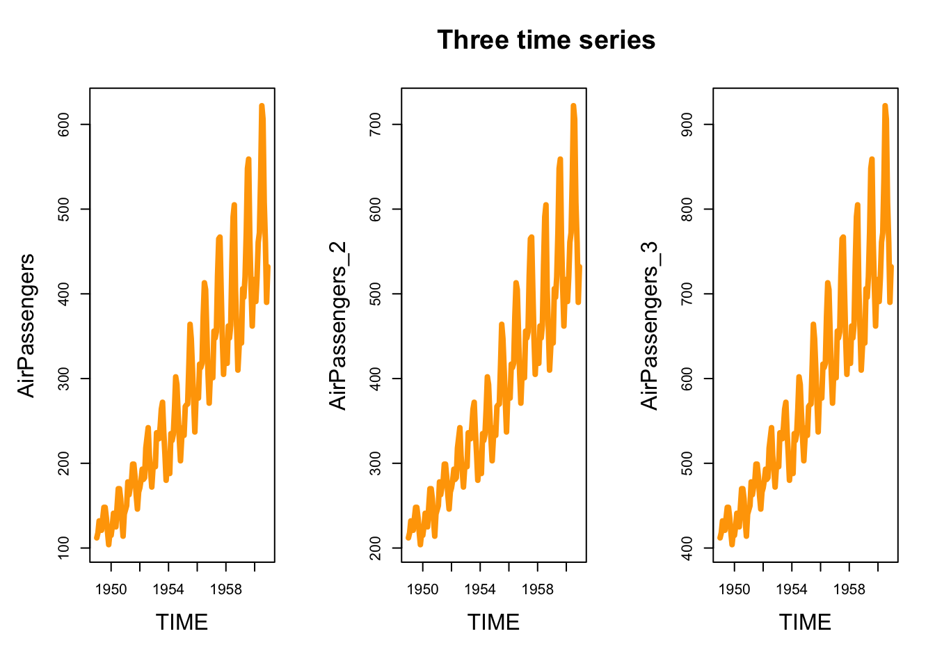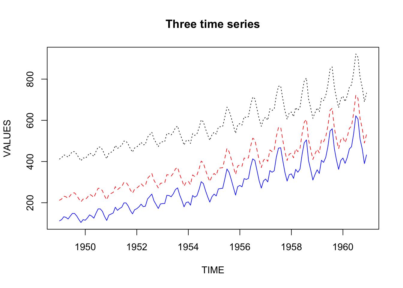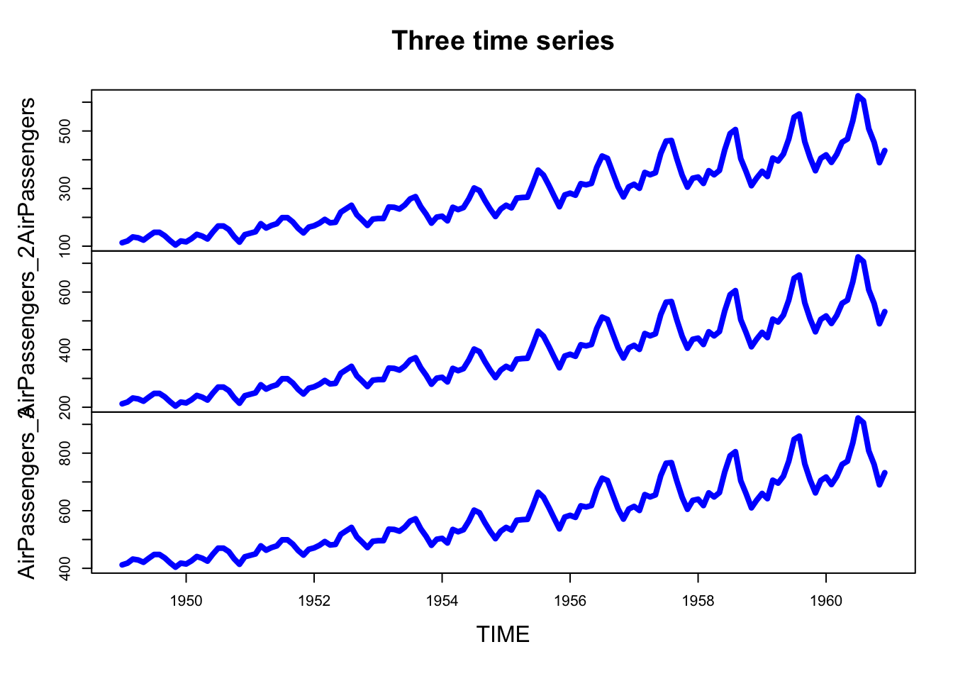 AirPassengers_multi <- ts.union(AirPassengers, AirPassengers_2, AirPassengers_3)