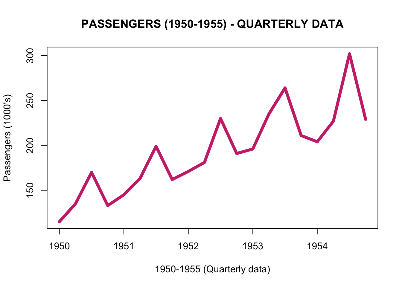 main = "PASSENGERS (1950-1955) - QUARTERLY DATA",