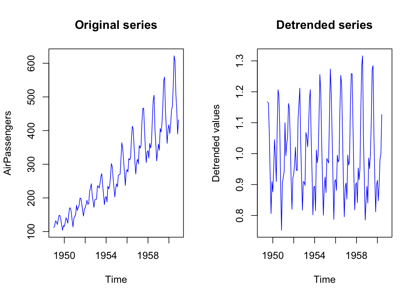AirPassengers_detrended <- AirPassengers/AirPassengers_trend_component